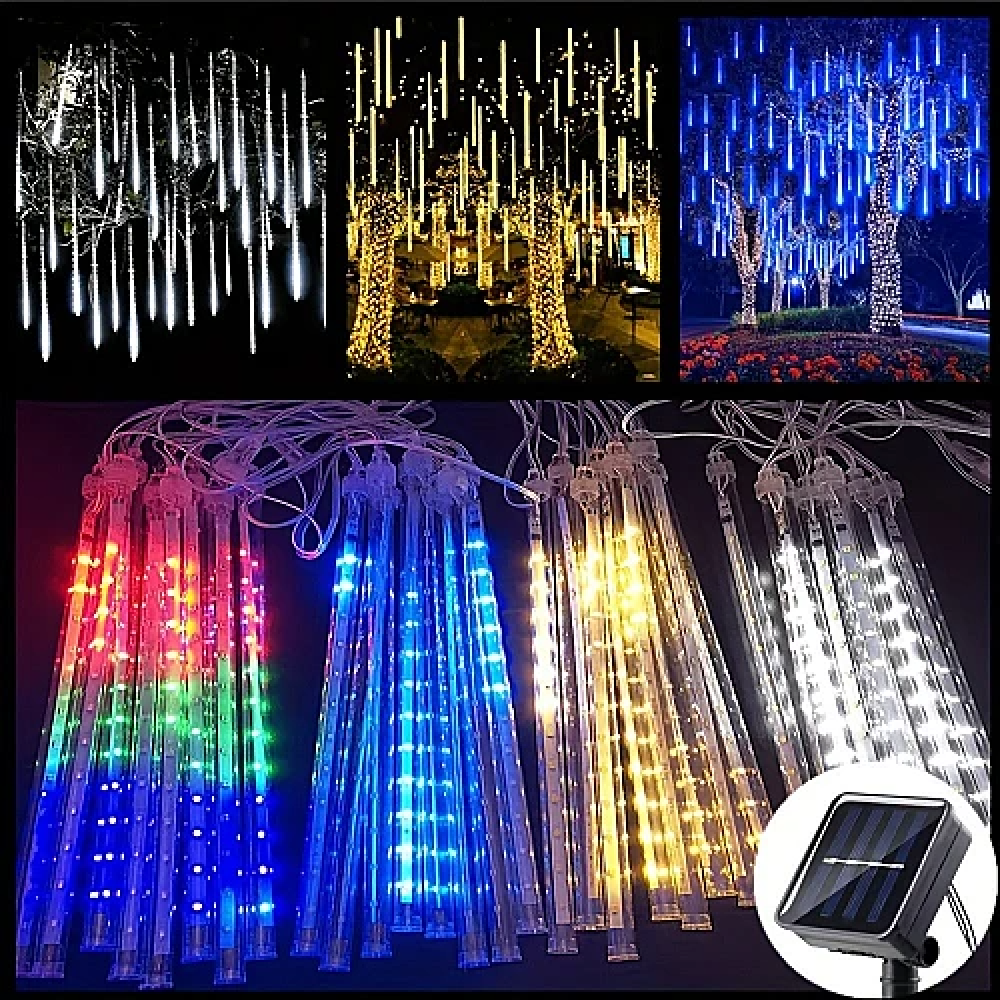 استمتعي بأجواء ساحرة مع سلسلة اضاءة ستارة تعمل بالطاقة الشمسية، بألوان RGB مبهجة ومقاس 30 سم، مثالية لتزيين المساحات الخارجية بلمسة ضوئية متغيرة وجذابة دون الحاجة للكهرباء.